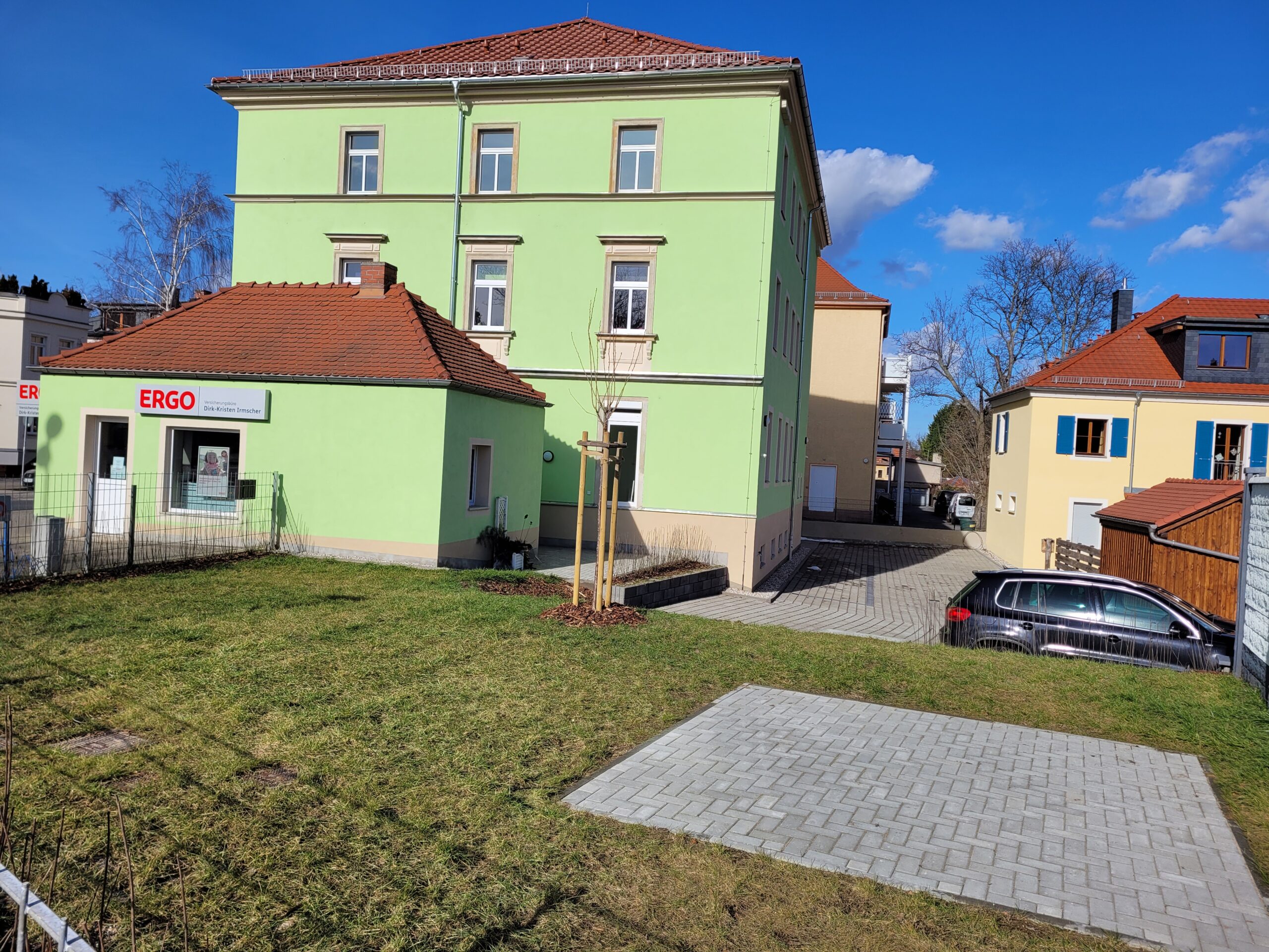 Die Außenanlage bietet bei Bedarf die Anmietung von Kfz-Stellplätzen.